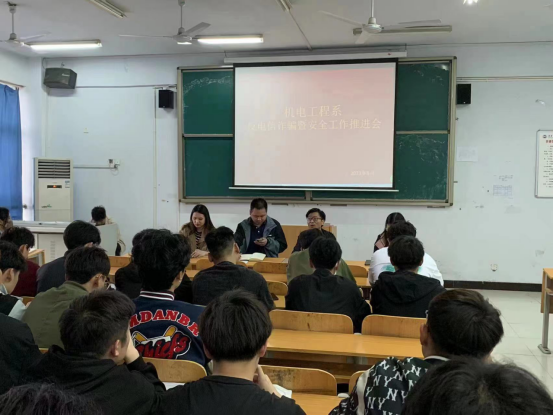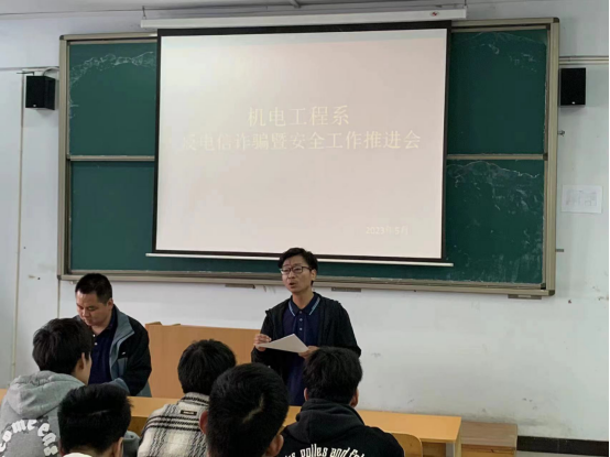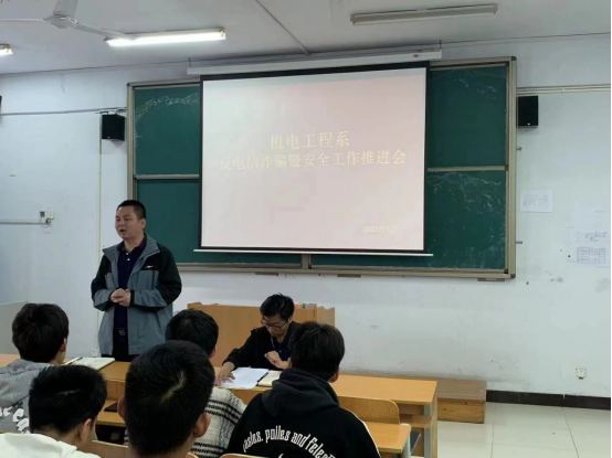 为深入贯彻落实学院关于反电信诈骗及安全教育工作部署,进一步提高全系师生反诈意识和安全意识,5月4日下午,机电工程系先后召开辅导员(班主任)、全体学生干部、全体团支书和全体班长等四场反电信诈骗暨安全工作专题会议。