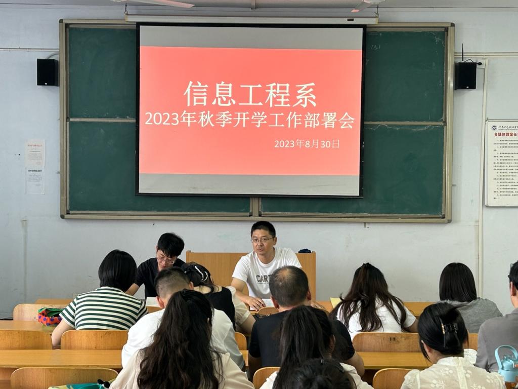 为做好新学期开学工作准备,明确各项工作任务和重点,8月30日下午,信息工程系在教A310教室召开了2023年秋季开学工作部署会,会议由系党总支副书记王旭主持,全体辅导员、班主任参加了此次会议。