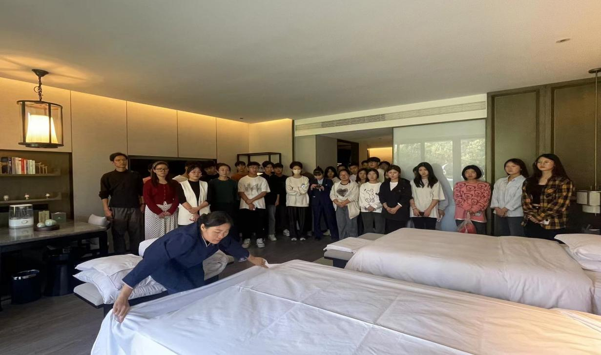 为进一步提高旅游管理专业人才培养水平,丰富学习形式,提升专业实训质量,10月31日,经济管理系副主任蔡青带领30余名旅游管理专业师生到瑞贝卡芙蓉园酒店进行了专业实训活动。