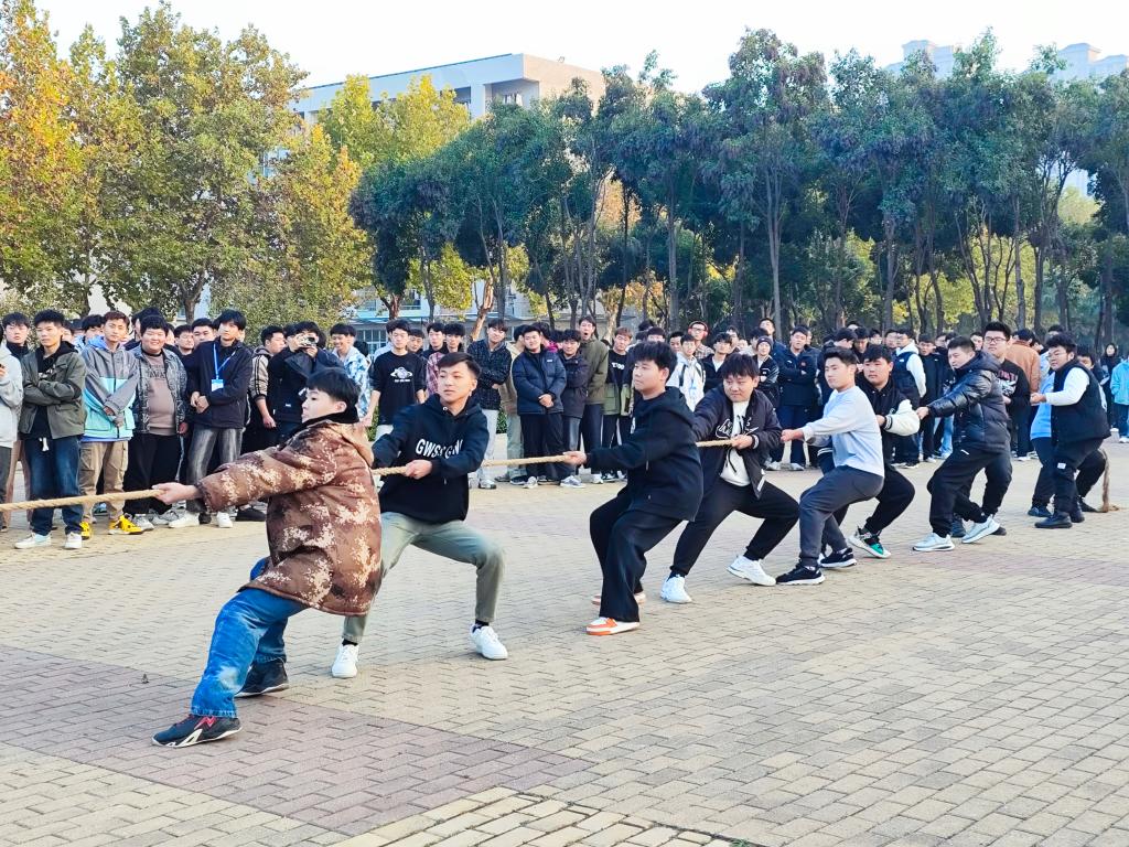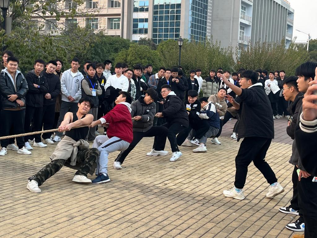 立冬过后,寒风凛冽,却阻挡不住同学们的热情,各队选手以默契的配合和高昂的士气全力以赴,握紧长绳,使出浑身解数将长绳向自己队伍的方向拉扯。赛场外同学们的加油助威声此起彼伏,他们的呐喊声激起了选手们的激情和必胜决心,使比赛的气氛更加热烈,营造了一个欢乐且充满活力的活动氛围。