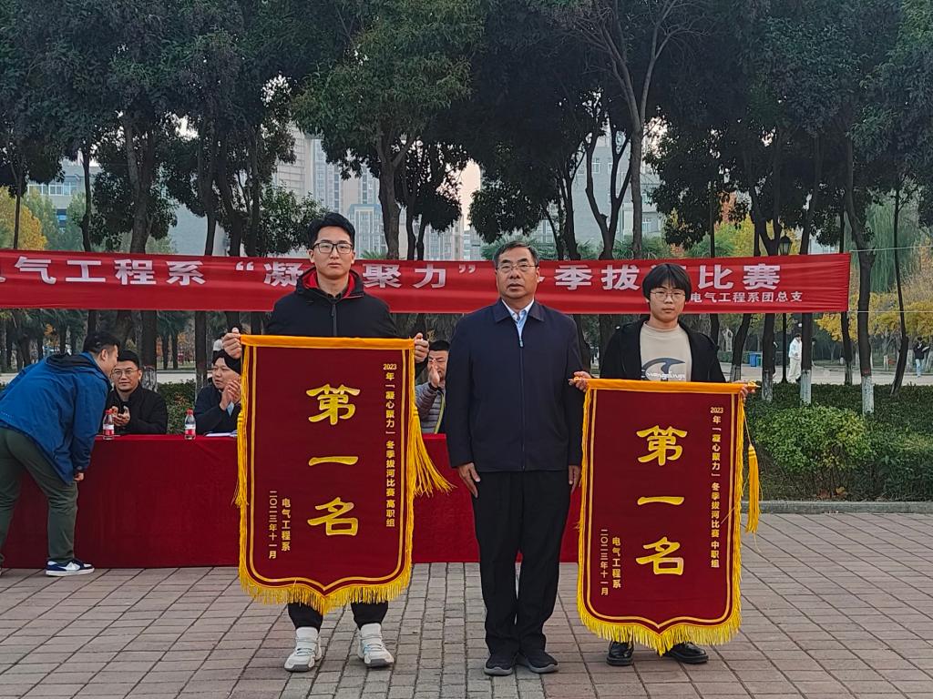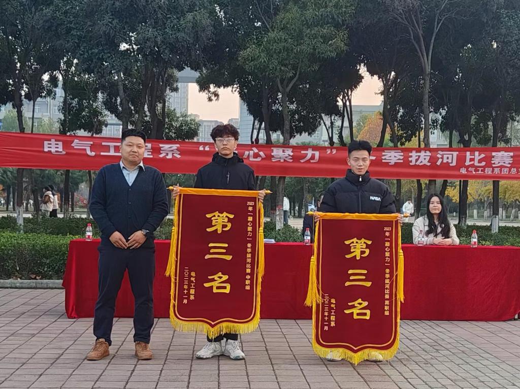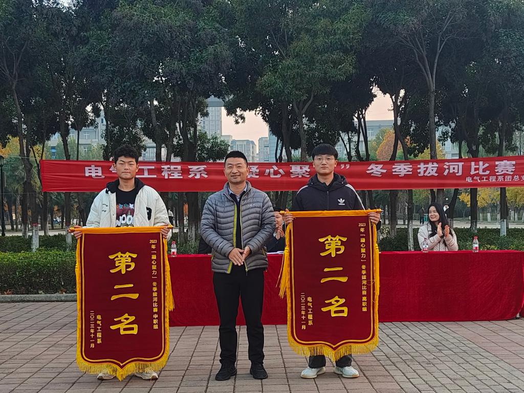为促进学生身心健康,培养团结协作精神,电气工程系于11月14日—20日举行了拔河比赛。此次比赛分高职组和中职组,共分为五场,参赛队伍按照抽签顺序依次上场。