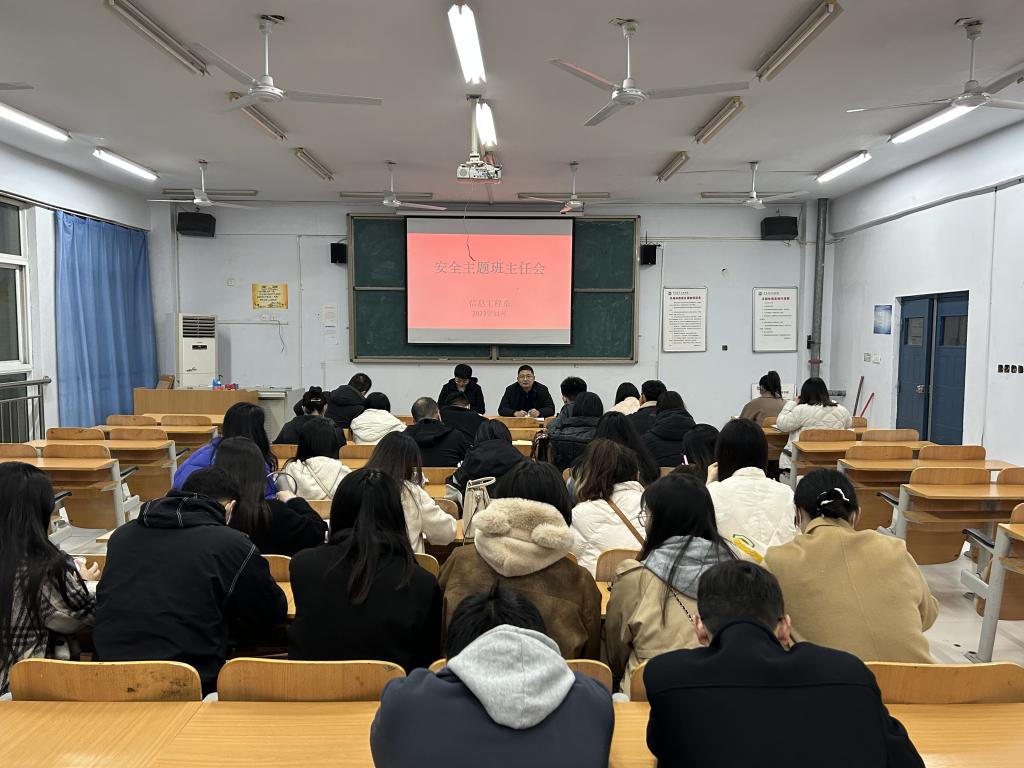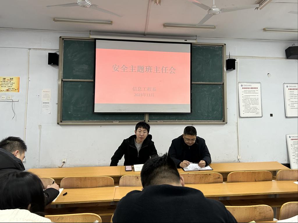 为提高学生的安全防范意识和避险能力,保障学生的安全,11月26日晚,信息工程系在A教学楼310召开了安全主题班主任会。信息工程系党总支副书记王旭及各在校班级辅导员(班主任)参加会议,会议由团总支书记宋尚霖主持。