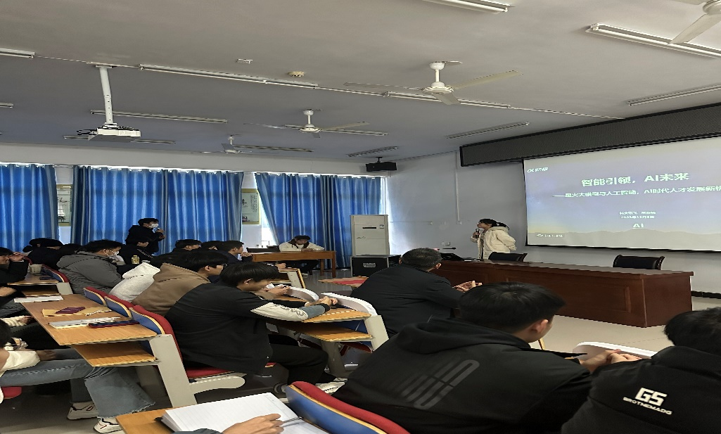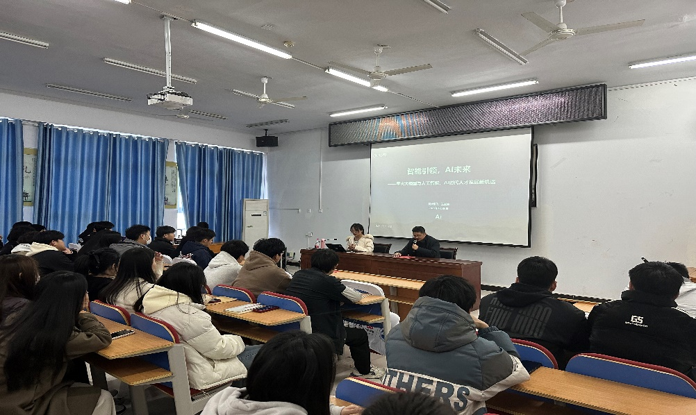 王老师从人工智能技术的发展现状、认知大模型对人才发展的影响与挑战、AI人才发展新机遇等几个方面为学生们进行了深入浅出的讲解,在讲座上,学生情绪高涨,互动积极,现场气氛热烈。