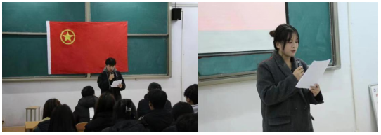 随后,入团积极分子学习班的优秀学员邢兆雨和老团员代表周双喜分别发言,表示作为新时代的一名团员,在今后的学习、生活中,都会严格要求自己,时刻牢记自己的身份和使命,积极向党组织靠拢,在共青团这个大家庭里,相互学习,共同进步,成为有担当、有责任的社会主义接班人。