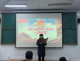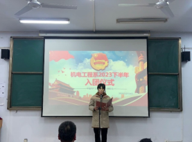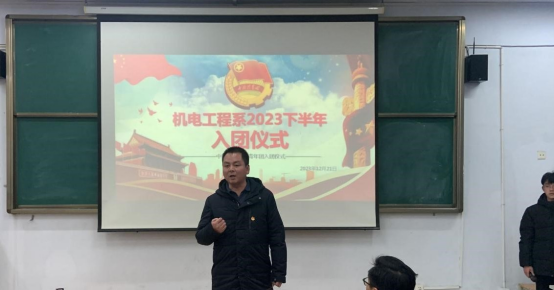 12月21日,机电工程系在教学楼A411教室为新发展的75名团员举行入团仪式,系副主任王会峰、团总支书记程文浩、团总支老师罗珂珂出席。