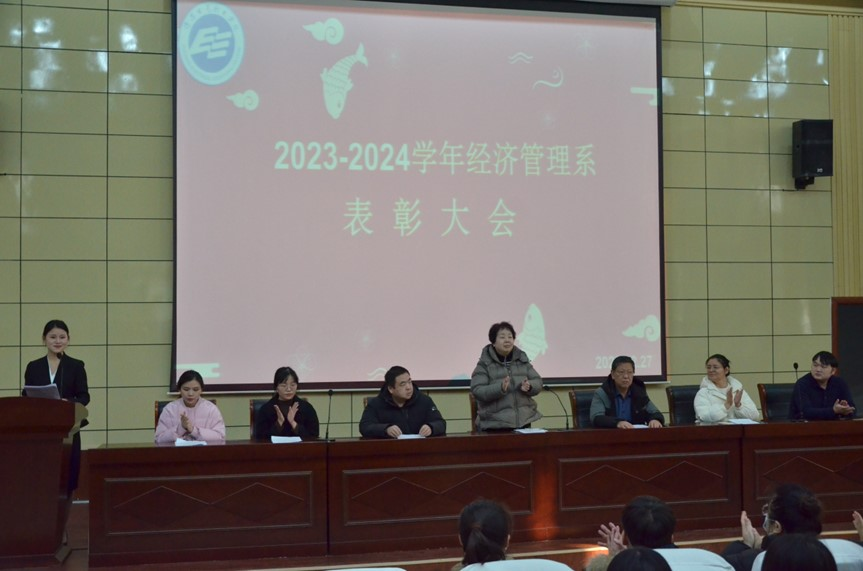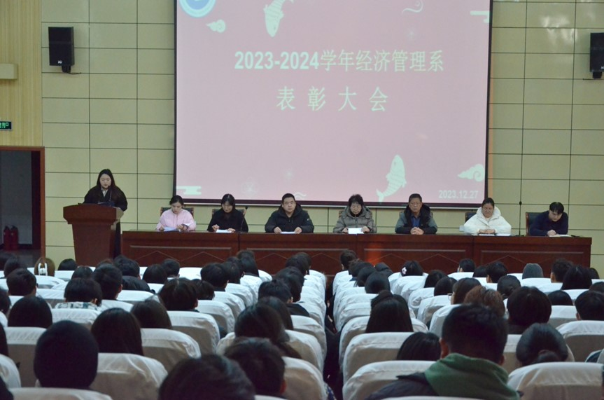 12月27日下午,经济管理系举行2023年度学生表彰大会,对过去一年中表现突出的先进集体和优秀个人予以表彰,激励学生们勇于创新、勇于实践,努力取得新的更好成绩。系党总支书记牛晓林,系主任郭德敏,副主任赵峰等出席会议,获奖学生代表、全体23级新生参加会议。
