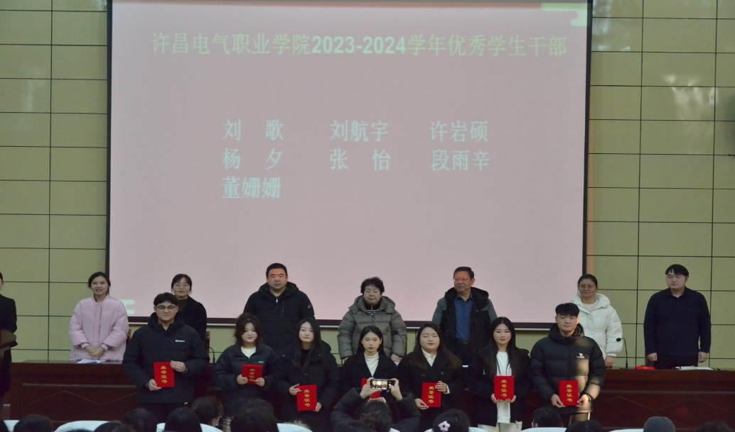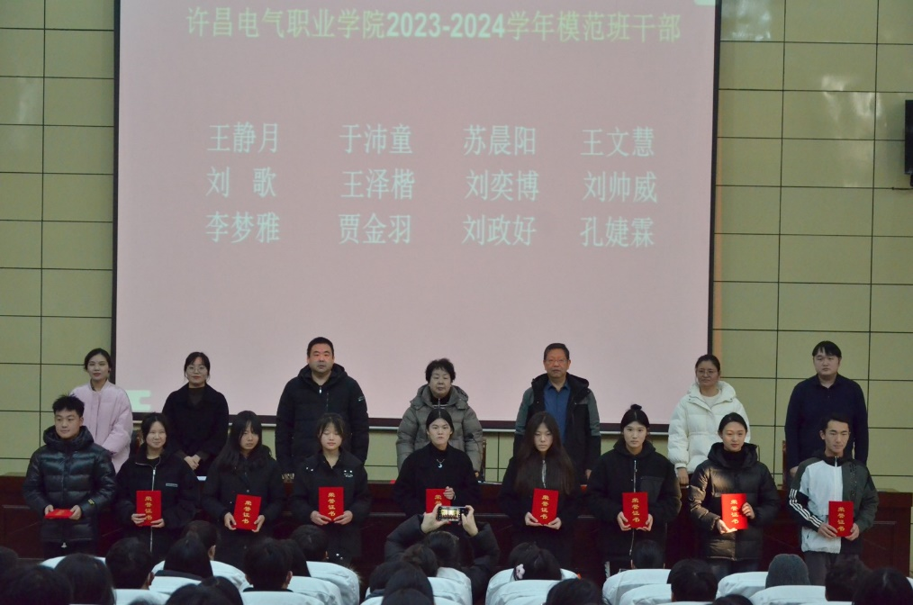 会上,赵峰宣读获得2023年度河南省技能竞赛获奖学生名单,表彰他们知行合一、勇于奋斗、实学实干的人生追求,勉励他们以青春之我、奋斗之我再创辉煌。系党总支副书记蔡青宣读许昌电气职业学院优秀学生干部、模范班干部获奖学生名单,表彰他们青春励志、砥砺奋进的时代担当,勉励他们锤炼品德修为,不负时代所托。同时对本年度品学兼优的三好学生、优秀三好学生予以表彰,对具有良好班风的先进班级予以表彰,希望他们能够继续发扬团结、勤奋、拼搏、进取的精神。