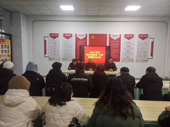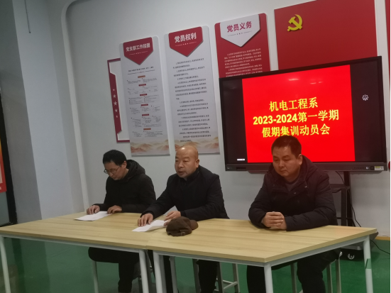 1月16日下午,机电工程系召开2023-2024学年寒假技能竞赛集训动员会,秣马厉兵,谋篇布局,全力备战2024年各级各类技能大赛。机电工程系竞赛专班成员、竞赛党员先锋队成员、各赛项辅导老师、所有备赛选手和特邀嘉宾国赛一等奖毕业生刘智泉参加会议。河南卷烟工业烟草薄片有限公司职工刘智泉,结合自己从一名许电新生,一步步成长,获国赛金奖,到烟草企业就职的奋斗经历做了简要报告,鼓励学弟们不畏艰难,砥砺前行。