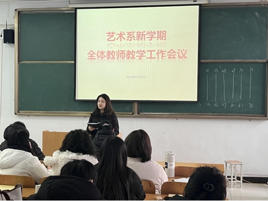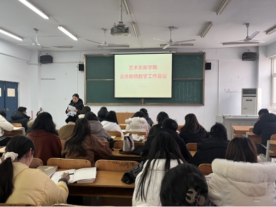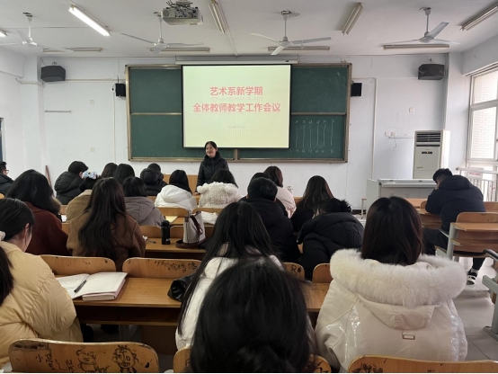 律回春晖渐,万象始更新。为切实做好新学期开学前各项教育教学准备工作,确保平稳有序的教学秩序,3月8日下午,艺术系在教A311教室召开全体教师新学期教学工作会议。艺术系主任阎瑾瑜、党总支副书记王俊平、副主任路庆敏及全体专兼职教师参加了此次会议。