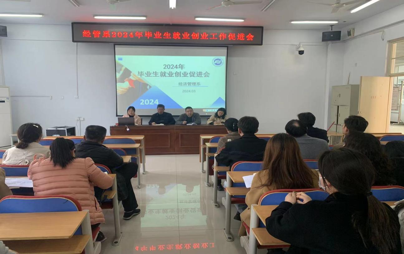 为进一步凝聚工作合力,帮助学生树立正确的就业观念,提升就业育人水平,高标准做好2024届毕业生就业指导与创业服务工作。3月20日下午,经济管理系在学院道德讲堂召开2024届毕业生就业创业工作推进会。会议由经济管理系主任郭德敏主持,全体教职工参加会议。
