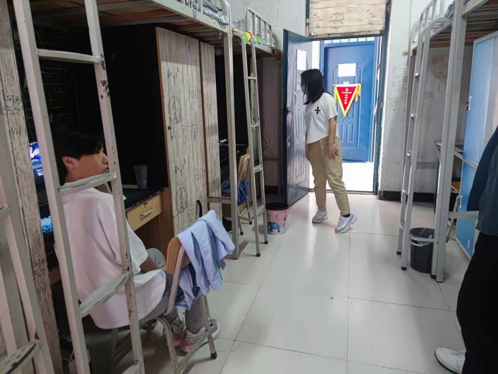 检查过程中,各位老师对寝室的安全卫生、违禁电器、易燃易爆物品进行逐一排查。
