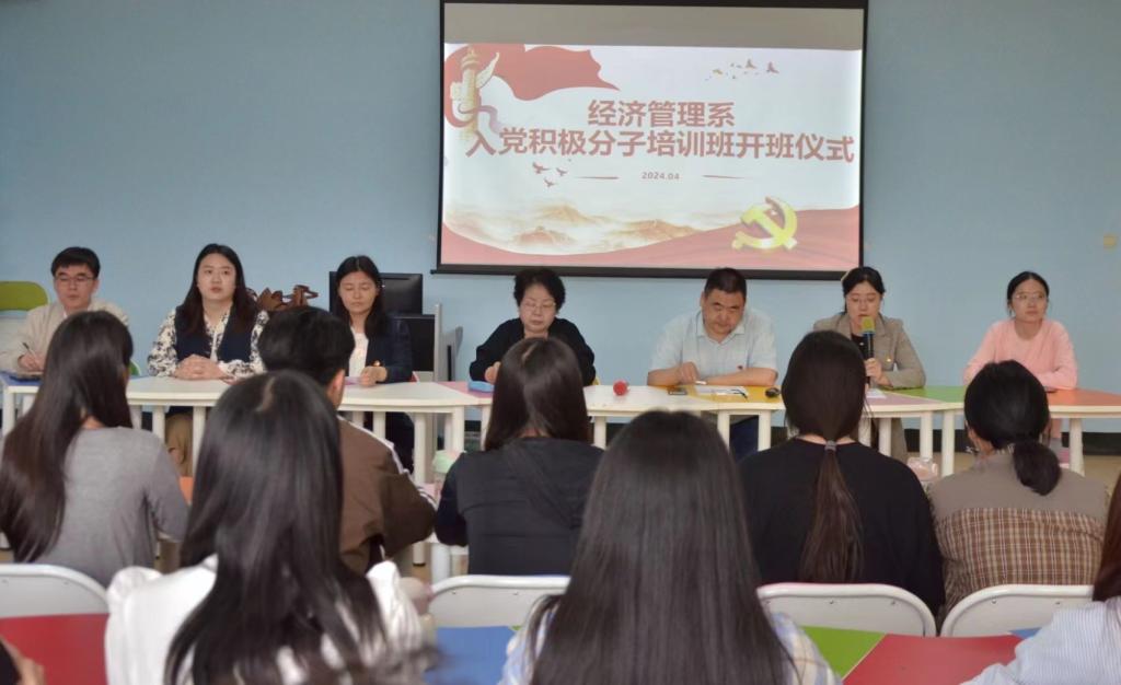 为引领广大青年学生坚定信念跟党走,奋进新征程,经济管理系于4月22日举行了2024年上半年入党积极分子培训班开班仪式。经济管理系党总支书记牛晓琳,副书记吕艳,副主任赵峰,团总支书记孙妍哲以及部分教师代表出席开班仪式。