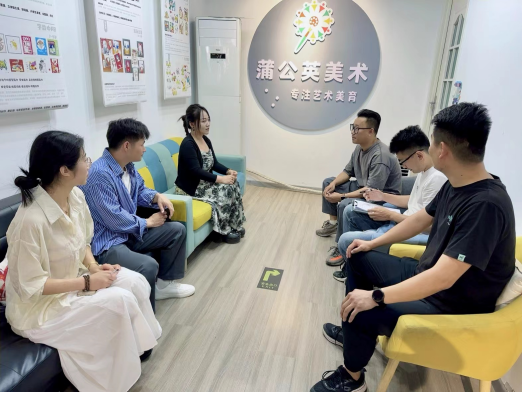 蒲公英美术培训班负责人也就其校区的发展历程、教育理念和教师培养等作了详细的介绍,双方就师资培训、学生的人才培养方向、人才需求就学生就业实习具体办法等进行了协商探讨。