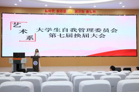 为进一步优化学生组织体系,加强学生干部队伍建设,推进委员会管理工作,艺术系于6月12日中午12点在VR思政厅举办了“大学生自我管理委员会第七届换届大会”。党总支副书记王俊平、副主任路庆敏、白鸽,团总支书记张世浩,创业科科长田兴亮、辅导员苏恒及艺术系委员会全体成员出席会议。