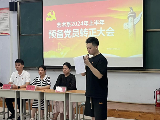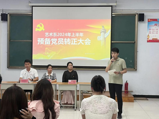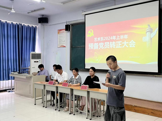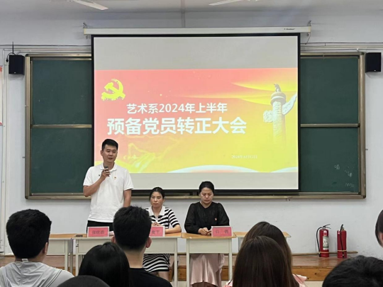 为进一步加强党员队伍建设,增强党员队伍的生机和活力,艺术系党总支于6月13号下午在A111教室召开了预备党员转正支部大会。艺术系党总支副书记王俊平、艺术系副主任白鸽和全体学生党员参加会议。会议由艺术系团总支书记张世浩主持。