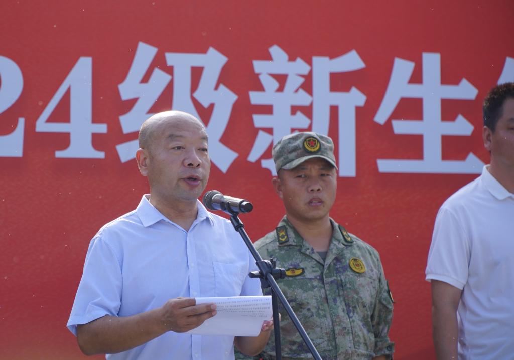 学院党总支书记刘建刚发表动员讲话,向本次军训全体教官表示诚挚感谢,向全体参训同学表示亲切问候并提出三点要求:一是要充分认识军训的意义,增强搞好军训的自觉性。二是要以振奋的精神状态,接受军训的锤炼,出色完成训练任务。三是要聚精会神搞好军训,严格遵守校规校纪和各项规章制度。
