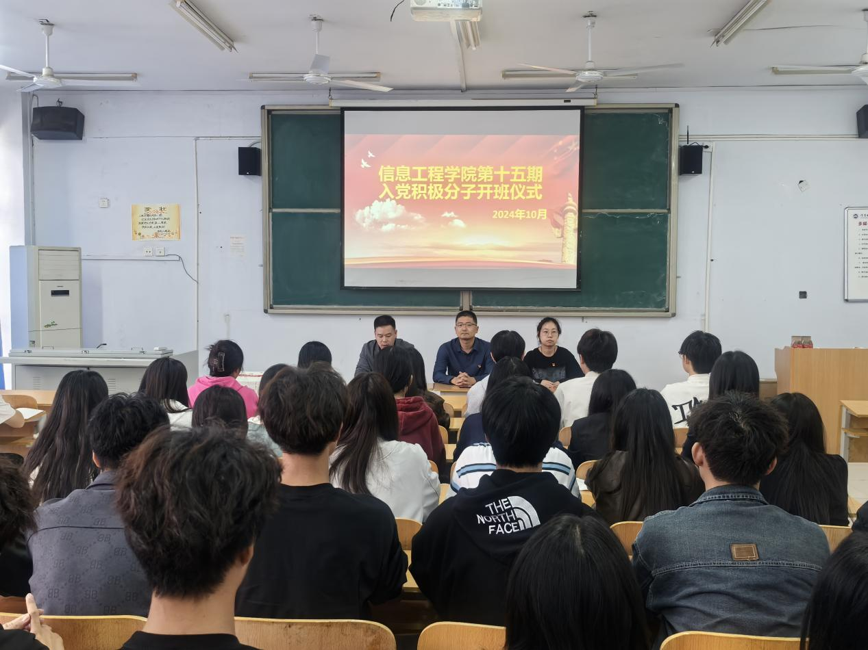 10月16日,信息工程学院举行第十五期入党积极分子培训开班仪式。学院行政负责人王旭、学生党支部组织委员李晓伟、学生党支部宣传委员张屹出席了本次开班仪式。此次培训共有 62 名入党积极分子参加。
