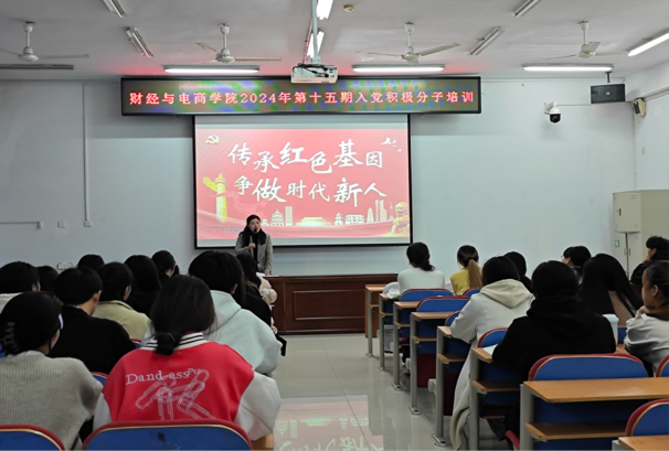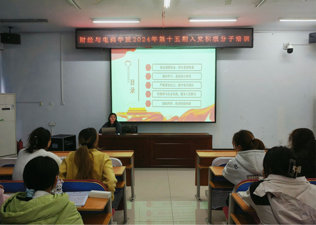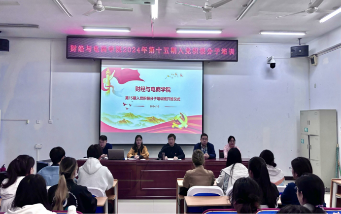 为深入学习贯彻习近平新时代中国特色社会主义思想,加强对入党积极分子的培养和教育,财经与电商学院于10月17日至10月23日举办2024年春季入党积极分子党课培训班,学院42名入党积极分子参与培训。