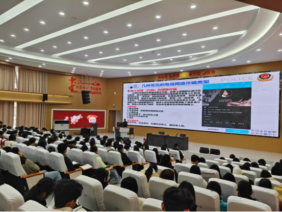 第二场讲座是由许昌市示范区尚集镇派出所协警吴红艳开展的防诈骗知识讲座。吴警官通过大量的实际案例,介绍了几种主要诈骗的类型。其中,“兼职刷单诈骗”是针对学生群体较为常见的诈骗方式,吴警官详细分析了诈骗分子的作案手段,提醒同学们不要轻信网络上轻松赚钱的虚假信息。“假冒客服诈骗”则往往利用人们对电商平台客服的信任,吴警官告诫师生们在接到自称客服的电话时,要通过正规渠道核实对方身份。