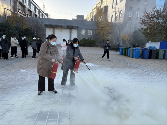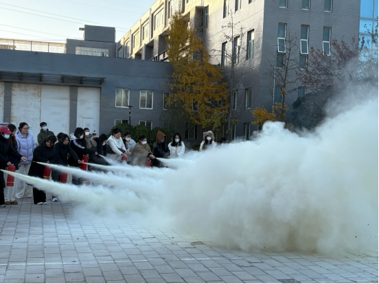 在灭火演练现场,盛明浩教员向大家详细讲解了灭火器的正确使用方法,包括如何检查灭火器是否正常、如何操作灭火器的压把、如何对准火焰根部进行喷射等。随后,部分学生和工作人员在保卫处人员的指导下,亲自体验了灭火器的使用,成功扑灭了模拟火源。