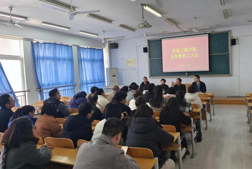 本次教职工大会的成功召开,让全体教职工明确了新学期的工作方向和重点,激发了大家的工作热情与责任感。相信在学院领导的带领下,全体教职工团结一心、共同努力,信息工程学院在新学期定能取得更加优异的成绩,为学校的发展做出更大的贡献。