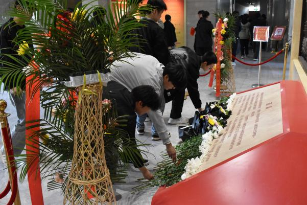 下午两点半,师生一行怀着崇敬的心情进入纪念馆。在展馆大厅的燕振昌同志雕像前,师生列队肃立,向这位"农民书记"敬献鲜花,花瓣轻触雕像基座,寄托着对这位扎根基层44载的"时代孺子牛"的深切追思。