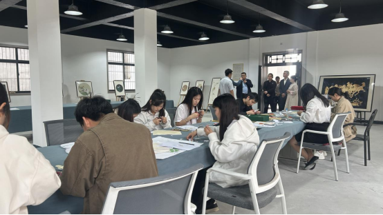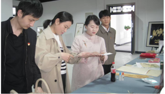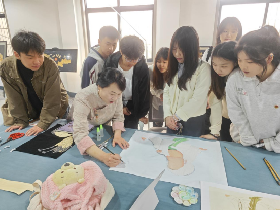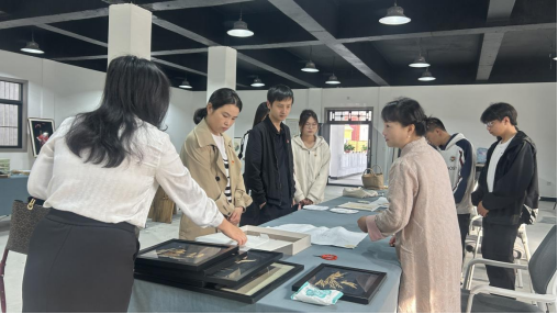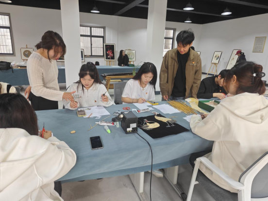 4月10日,艺术与设计学院党总支副书记王俊平、教研主任张婉、专职教师关琪、刘洋带领沈灿等9名设计专业学生走进非遗“麦秸画”传承人杨丽工作室,开展了一场沉浸式非遗文化实践教学活动。活动通过“看、学、做、创”四维教学模式,架起传统工艺与现代设计的桥梁,为非遗传承注入青春力量。