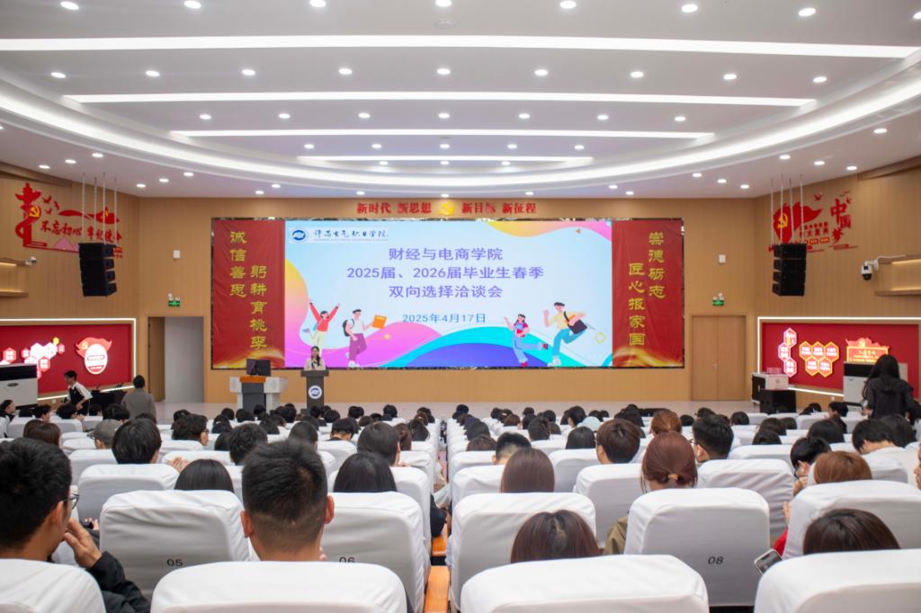 为贯彻落实党中央、国务院“稳就业”“保就业”决策部署,做好我校2025届和2026届毕业生就业实习工作,加强学校与用人单位的交流和合作,更好的为用人单位和毕业生搭建洽谈平台,4月17日下午,财经与电商学院在学院VR报告厅隆重举办了2025届、2026届毕业生春季双选会。