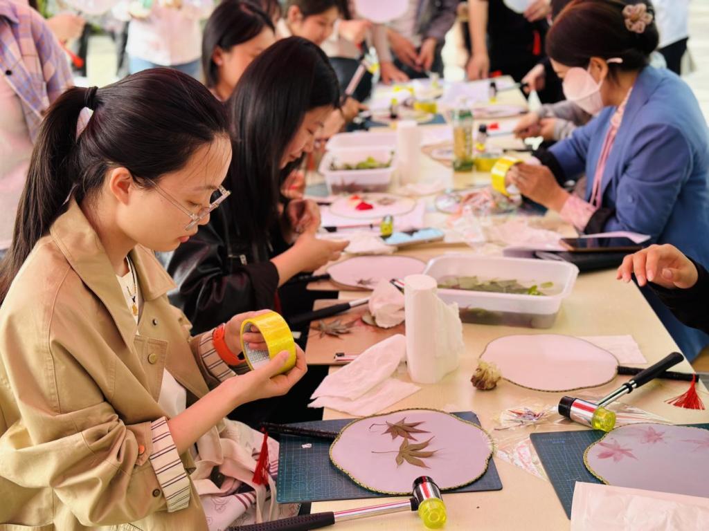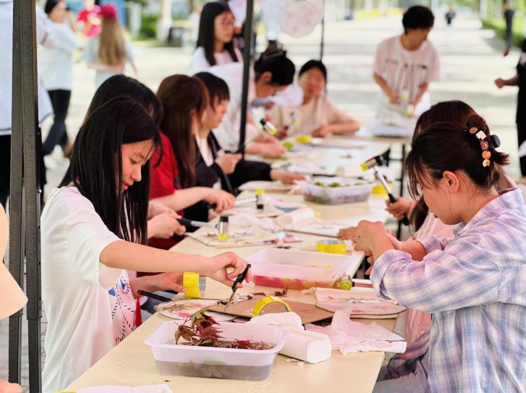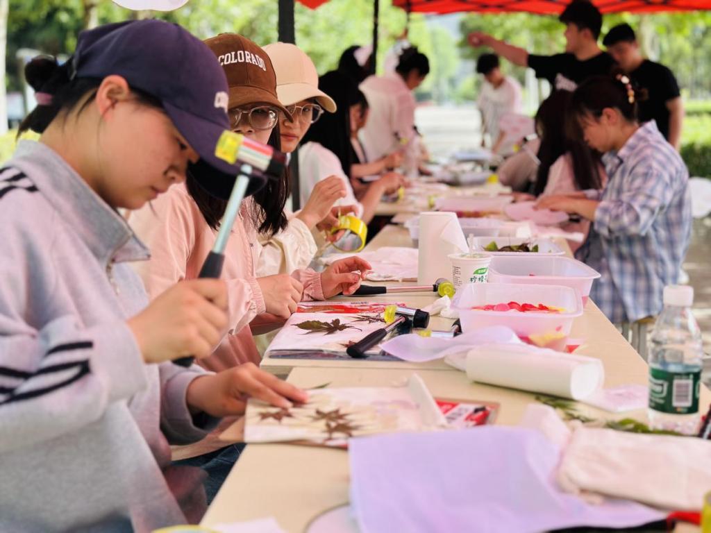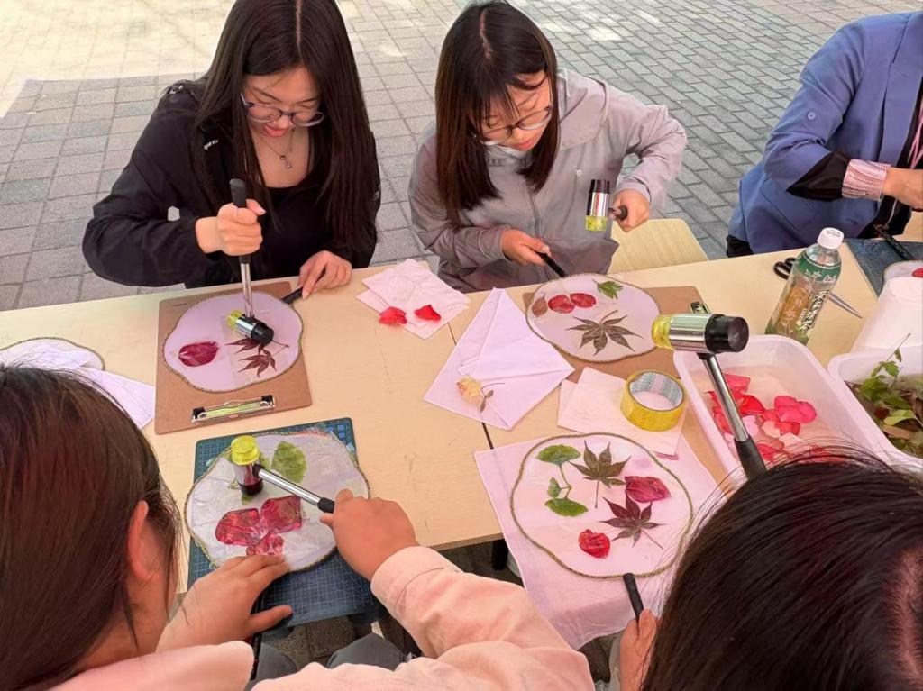 活动结束后,一件件色彩斑斓、独具匠心的作品惊艳亮相,在活动现场展出,吸引众多师生驻足欣赏。精美的叶脉纹理、独特的自然晕染,让大家近距离领略到非遗技艺的魅力,参与活动的同学们感慨道:“当亲手将普通的花草变成艺术品,特别有成就感,更是体会到了我们传统文化的魅力!”