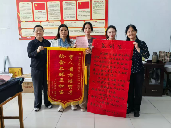 锦旗寄谢意,善举暖人心。5月13日上午,一面绣有“拾金不昧显担当,育人有方培贤才”的锦旗和一封饱含深情的感谢信,送到了艺术与设计学院办公室,为我院增添了一抹温暖亮色,也让2023级婴幼儿托育服务与管理2班学生刘旭拾金不昧的事迹广为人知和流传。