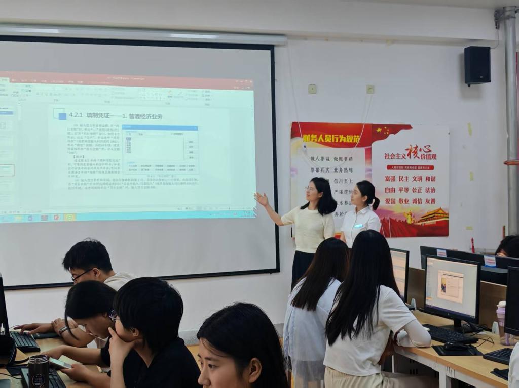 实践课堂中,学院教师与兴业证券专家组成“双师指导团”,带领同学们走进ERP实训中心。学院教师先对ERP财务业务一体化的核心概念与操作流程进行梳理,为实践操作打下基础。接着,兴业证券的财务专家模拟企业日常运营场景,指导同学们在系统中完成从采购、生产、销售到财务核算的全流程操作。同学们在双师的指导下,分组完成各项业务操作,在实践中逐步掌握了ERP系统的操作技巧,加深了对财务业务一体化的理解。