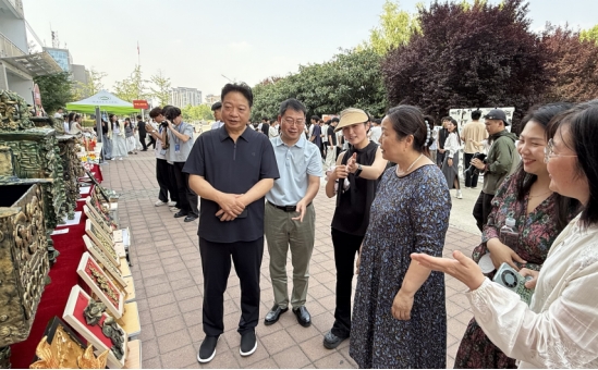 活动期间,学院院长高远浩、学生处处长杨红培到现场参观了教学成果展,对我院的教学成果表示了肯定和赞扬,对展品的专业水准与文化内涵给予高度评价,并就后续校企合作、作品转化等事宜提出指导性意见。