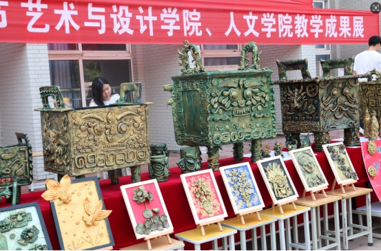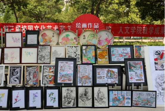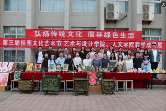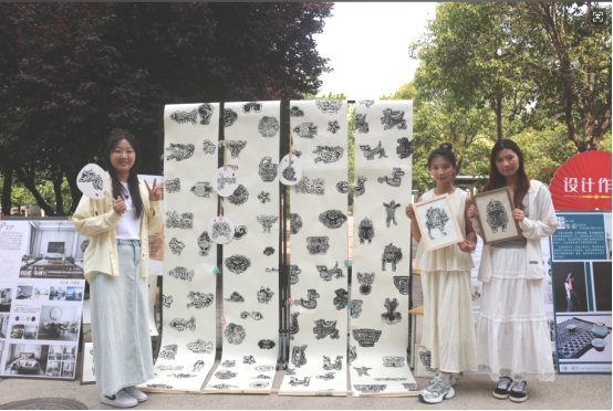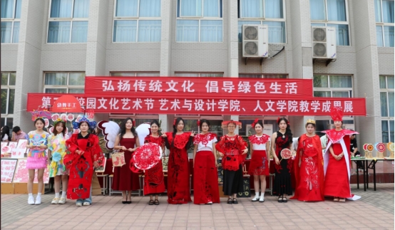 5月28日,艺术与设计学院第三届校园文化节教学成果展在教学楼A东侧广场盛大启幕。本次文化节以“弘扬传统文化・倡导绿色生活”为主题,集中呈现设计作品、绘画作品、影幕拾光、非遗文创、创意书法、化妆造型、幼儿手工等 7 大板块超 300 件创意作品,吸引全校师生驻足参观,成为校园美育实践与专业教学融合的生动缩影。