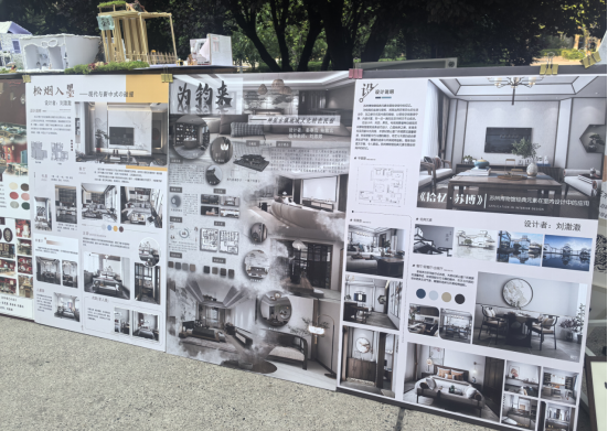 设计类作品展区中,艺术设计专业学生展示了学生及老师的部分获奖作品及优秀课堂作业,内容涵盖社区更新、生态景观、文化空间设计、地域文化宣传等领域,作品将设计创意及实训技艺以手绘、模型、展板等多元化形式展现出来,展现出青年设计师对设计的思考与创新。