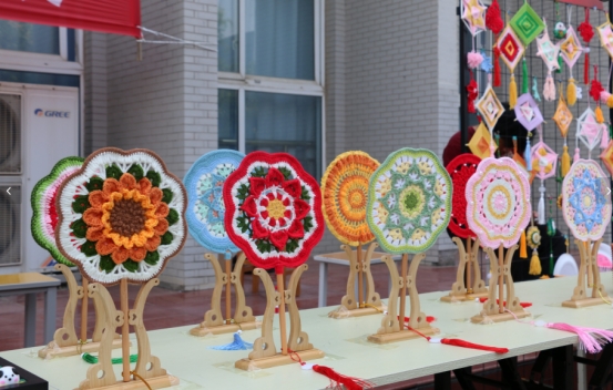 非遗文创与幼儿手工展区充满温情与巧思。师生合作的拓印长卷、作品剪纸作品化身服装秀场,粘土文物大方鼎,钩针花束等将传统技艺与现代生活美学结合,创造一幕幕壮观的视觉盛宴,展示出传统文化的美,更展示了学生强大的动手能力。