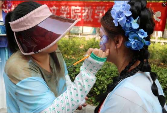 化妆造型区以“面部彩绘”为主题,现场展示化妆技术,吸引学生排队体验。