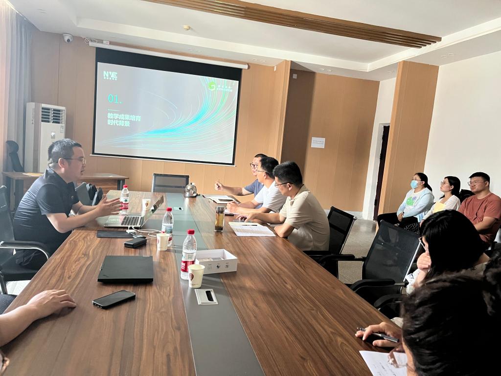 6月13日下午,信息工程学院在实训D楼302室成功召开“高质量省级教学成果奖专题研讨会”。本次会议特邀国研未来教育科技研究院研究员、第二轮双高专家组成员、教育部新工科研究与实践项目专家王鑫主任来我院作关于省级教学成果奖的专题培训。信息工程学院党总支书记陈晓红、行政负责人王旭、副院长李禄源、各专业团队负责人、骨干教师及锐捷区域经理等40余位代表参会,围绕教学成果培育展开深度研讨。