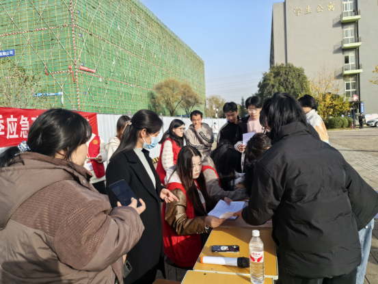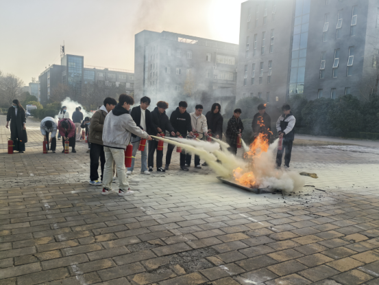 下午3点,演练正式开始。发出紧急救援疏散命令后,各工作组迅速到岗待命。疏散过程中,师生配合默契、行动规范,大家“低头弯腰、捂住口鼻、有序前行”,严格按照预定路线快速撤离,最终共同汇合至宋应星广场。灭火实操环节是本次演练的亮点,灭火抢险组人员率先示范,详细讲解灭火器“提、拔、握、压”使用要领及消防栓水带连接技巧,并组织师生代表分组进行灭火实操演练。大家踊跃参与,在专业指导下完成模拟火情扑救,切实掌握了消防器材使用技能。