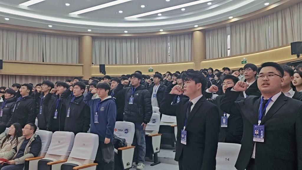 仪式最后,在完颜文博同学的带领下,第十三届自管会全体成员庄严宣誓,承诺将以实际行动践行责任与使命,不负学院领导、老师的信任与广大同学的期待。