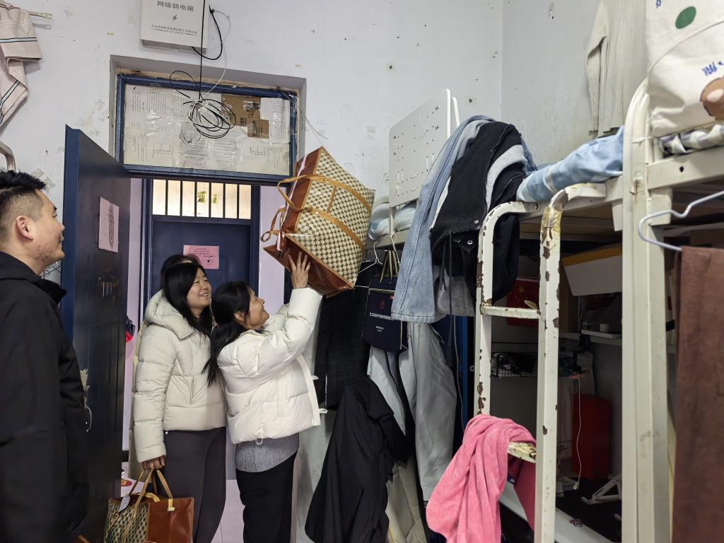为了不打扰学生的正常学习生活,给予学生最温暖的尊重,学院精心策划了此次“悄悄送达”行动。活动前,阎瑾瑜与老师们仔细核对学生宿舍名单与床铺信息,并亲手在每张爱心卡片上写下鼓励与祝福的话语。12月11日上午,阎瑾瑜一行带着打包整齐的棉被,利用学生上课时段,轻步前往相关学生宿舍。在宿舍管理人员的协助下,老师们细心地将一床床崭新的棉被与饱含温情的卡片,轻轻放置于学生的床铺上。整个过程安静而迅速,宛若冬日里一道温暖的影子,只为将实实在在的温暖留在学生身边,将惊喜与感动留在他们归来的时刻。