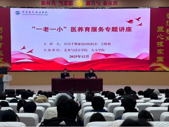 为深化产教融合、普及康养照护知识,同时拓宽师生的学术视野与就业路径,12月17日上午,艺术与设计学院、人文学院联合主办的“一老一小医养育服务”专题讲座,在VR思政演播厅顺利举行。人文学院党总支负责人吴玉烁学院教职工及智慧健康养老服务与管理、学前教育等相关专业学生代表共同参加。许昌千翼康复医院院长王晓莉受邀担任主讲嘉宾,讲座由人文学院行政负责人王德真主持。